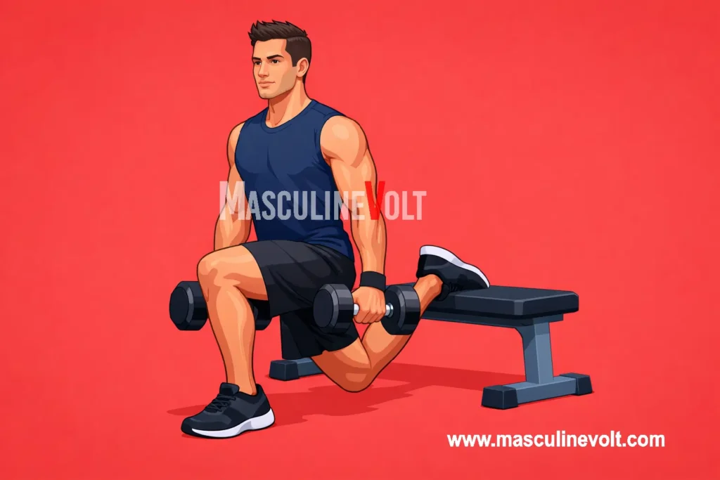 Additionally, perform equal repetitions on both legs. Rest briefly between sides for recovery. Focus on posture and joint alignment always. This exercise improves athletic coordination and stability. Overall, it builds functional masculine lower body power.